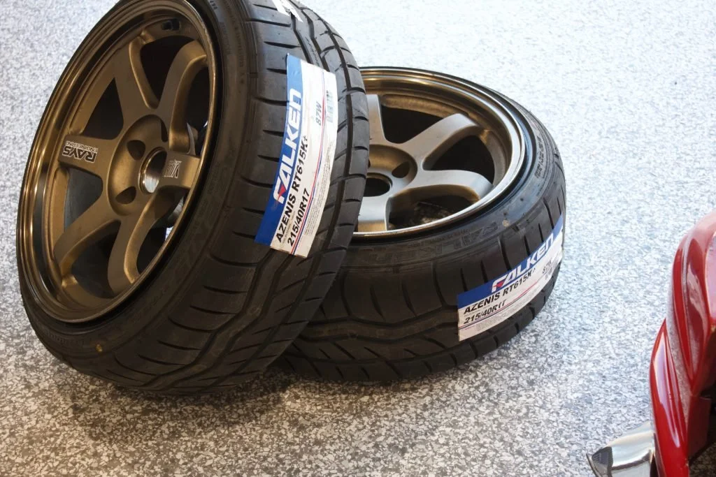 The car was setup in a way I would call 2000’s style. Low, metal front fenders, small front tyres in 215/40/17 on a 9j with 235/40/18’s in the rear on 10.5js.